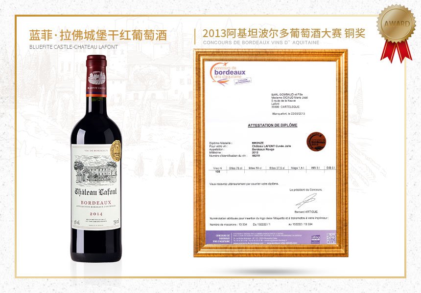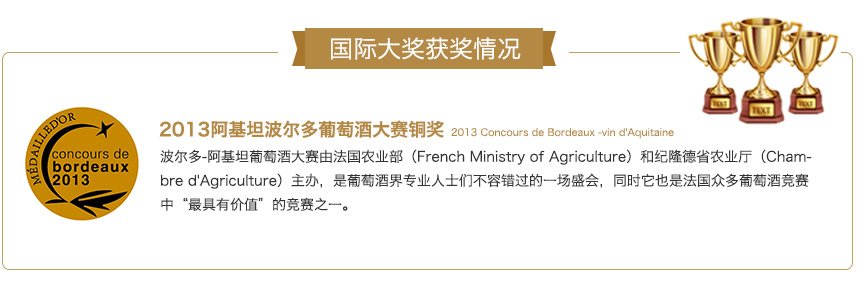 2013阿基坦波爾多葡萄酒大賽銅獎