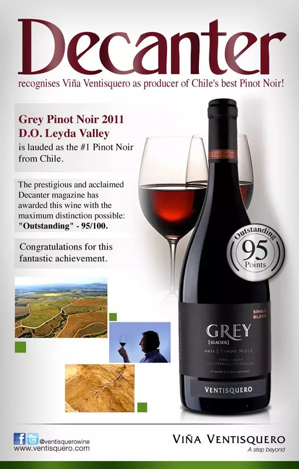冰川酒莊格麗系列黑皮諾紅葡萄酒 2011 年份(Ventisquero Grey Pinot Noir)就獲過《醇鑒》的 95 分高分評價,星級指數(shù) 5 顆星。此款酒散發(fā)黑莓、草莓的香氣,酸度適宜,經(jīng)橡木桶陳釀后單寧柔和,品質(zhì)優(yōu)異。