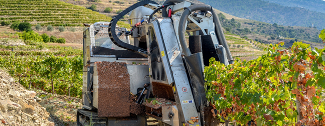 在一些地勢平坦、便于機械作業(yè)的產區(qū),有些酒莊選擇用機器采收,依靠機器搖晃葡萄樹的主干將葡萄抖落下來。這種方式沒辦法對葡萄的優(yōu)劣進行選擇,但勝在速度快,且對人力要求較低。