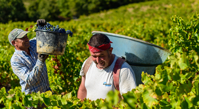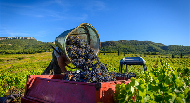 采摘下來的葡萄會裝在箱子或是籃子里,盡快運送至釀酒廠。