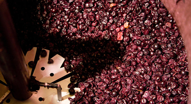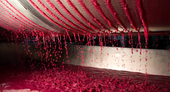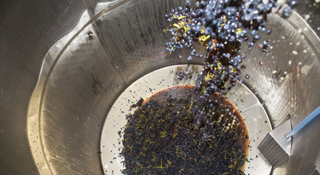 葡萄采收后會進行去梗和破皮,但這不是必須工序,因為有些酒莊會特意保留果梗,保持果實顆粒完整,以便進行整串發(fā)酵。破皮的過程需盡可能輕柔,避免破壞葡萄籽,釋放出苦油和單寧。