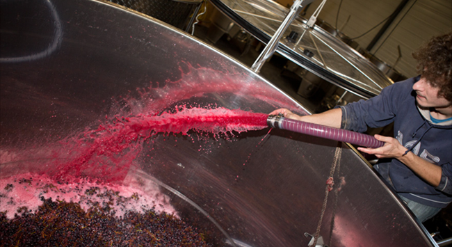 倒罐和回混:發(fā)酵罐底部的葡萄汁泵送至另一個儲酒罐中,之后再將葡萄汁泵送回原來的容器中,并從發(fā)酵罐頂部向下噴淋酒帽。