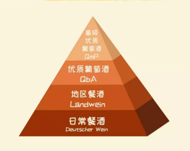 德國現(xiàn)實行兩套分級制度,即官方分級與德國名莊聯(lián)盟(Verband Deutscher Pradikatsweinguter,簡稱VDP)分級。
