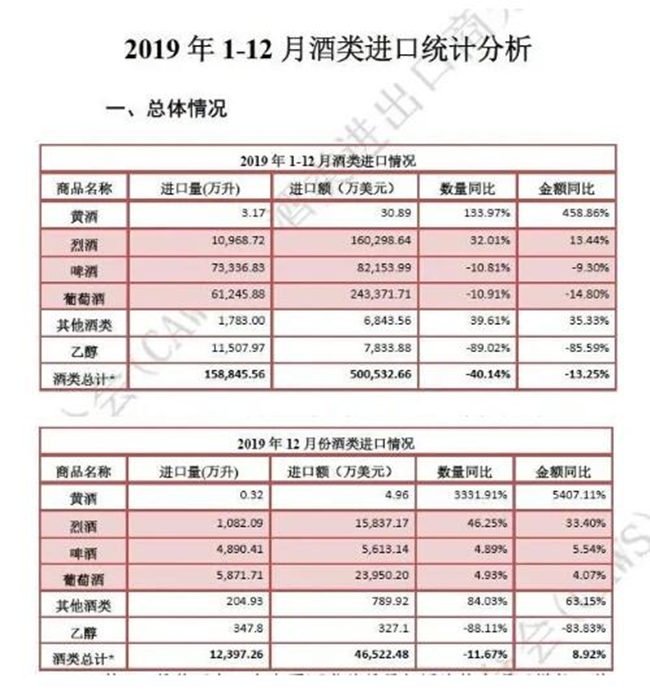 日前,中國食品土畜進(jìn)出口商會(huì)酒類進(jìn)出口商分會(huì)發(fā)布了最新的酒類進(jìn)口數(shù)據(jù)。