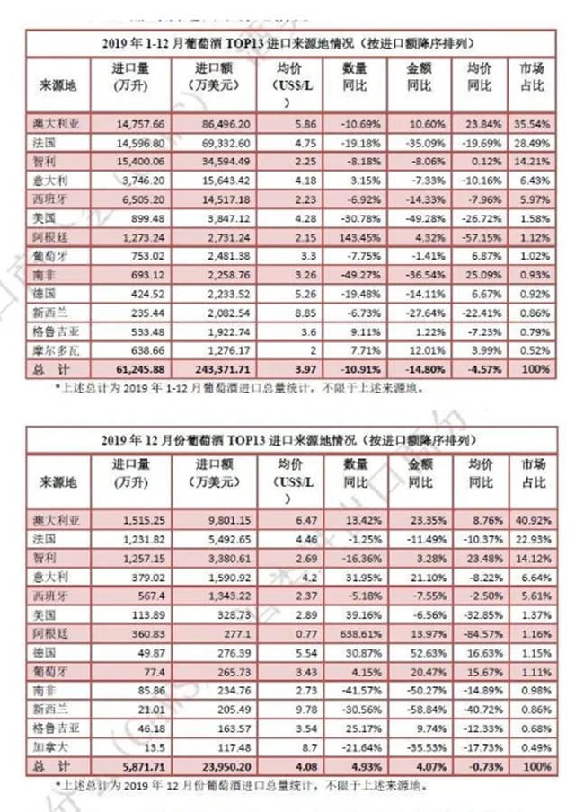 在去年11月,WBO預(yù)測(cè)2019年年底葡萄酒進(jìn)口量、額的跌幅將收窄,年終數(shù)據(jù)顯示,企業(yè)去庫存已經(jīng)有明顯成效。2019年12月,進(jìn)口葡萄酒數(shù)量同比增長4.93%,金額增長4.07%。情況正在往好的方向發(fā)展,中美之間第一階段貿(mào)易協(xié)議的簽署會(huì)給市場(chǎng)帶來正面影響,然而新冠疫情的來襲暫時(shí)中斷了這個(gè)態(tài)勢(shì)。