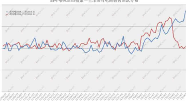 在Nov 2019 to Jan 2020——Nov 2018 to Jan 2019階段,Baidu搜索量平穩(wěn)增長(zhǎng),作為傳統(tǒng)節(jié)日的春節(jié)后因假期及外部環(huán)境原因開始下滑。而同一時(shí)期內(nèi),9kacha搜索量增長(zhǎng)明顯,9kacha用戶群體中,約1/3為葡萄酒行業(yè)用戶,受春節(jié)、提前進(jìn)入假期及外部環(huán)境原因,搜索量開始下滑,整個(gè)葡萄酒行業(yè)受假期及外部環(huán)境原因影響更加明顯。