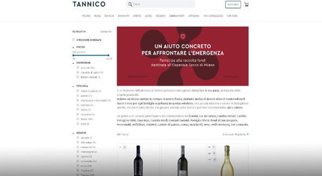 意大利最大的在線葡萄酒商店Tannico的另一項有趣舉措是,在特定選擇下售出的每瓶葡萄酒,都會向米蘭的Sacco醫院捐贈1歐元。其中許多酒款都來自意大利的著名酒莊。