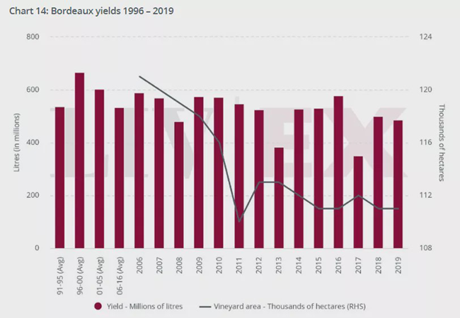 據(jù)蓋溫·肯尼迪(Gavin Quinney)和Saturnalia背后的團隊稱:2019年波爾多葡萄酒是一個非常好的年份。波爾多經(jīng)歷了2017年的霜凍和2018年的霉變,2019年波爾多總體產(chǎn)量達(dá)到4.863億升,這個數(shù)字低于去年的5億升,也低于10年平均產(chǎn)量5.08億升,但主要產(chǎn)區(qū)的產(chǎn)量仍相當(dāng)可觀。