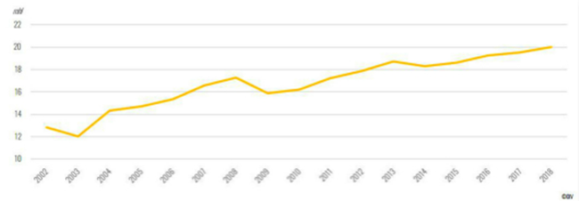 在過去的20年里,全球葡萄酒市場經歷了很大變化,其中起泡葡萄酒的市場發(fā)展尤為受關注。近年來,國際葡萄與葡萄酒組織(OIV)也一直在關注起泡葡萄酒市場并于近日發(fā)布了最新全球起泡葡萄酒市場報告(2002年-2018年)。