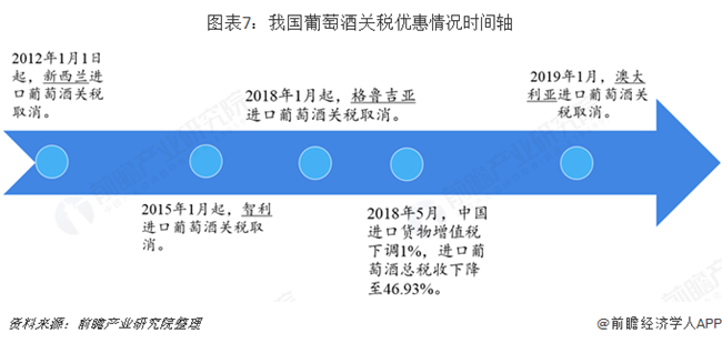 我國分別于2012年和2015年先后對新西蘭和智利進(jìn)口葡萄酒實(shí)施零關(guān)稅。2018年起格魯吉亞進(jìn)口葡萄酒也加入零關(guān)稅隊伍。根據(jù)中澳自貿(mào)協(xié)定,2019年1月起,我國進(jìn)口澳大利亞葡萄酒的關(guān)稅降至零。