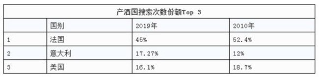 01、法國是搜索量最大產(chǎn)酒國,前十位排名有所變化