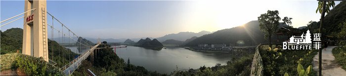 緊接著藍(lán)菲團(tuán)隊(duì)乘坐山體垂直觀光電梯,平布青云,扶遙直上,到達(dá)觀光電梯空中平臺(tái),一起俯瞰1680畝天鵝湖畔。我們相繼踏上擁有廣東省內(nèi)最長(zhǎng)、世界最長(zhǎng)喀斯特地貌湖景玻璃橋美稱(chēng)的天宮玻璃橋,輕松就能將整個(gè)湖光山色盡收眼眸,翠綠蔥郁的北江峰林重巒疊嶂,天鵝湖依山傍水波光瀲滟,一覽無(wú)遺的自然美景凝聚著和諧氛圍,眼前開(kāi)豁的視野放松了我們的心情。